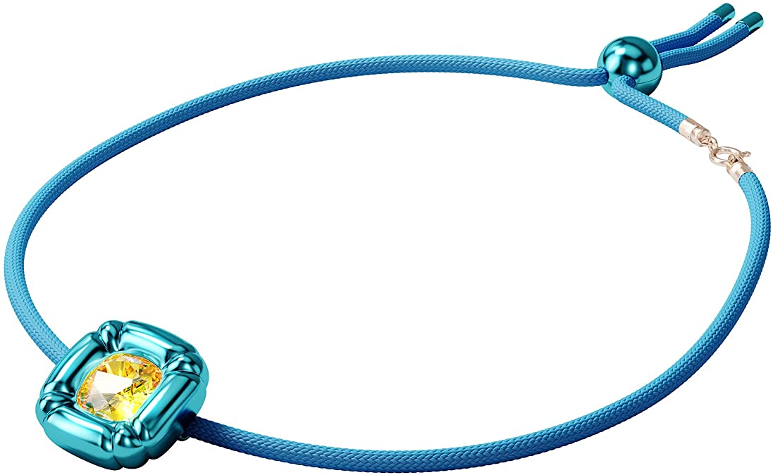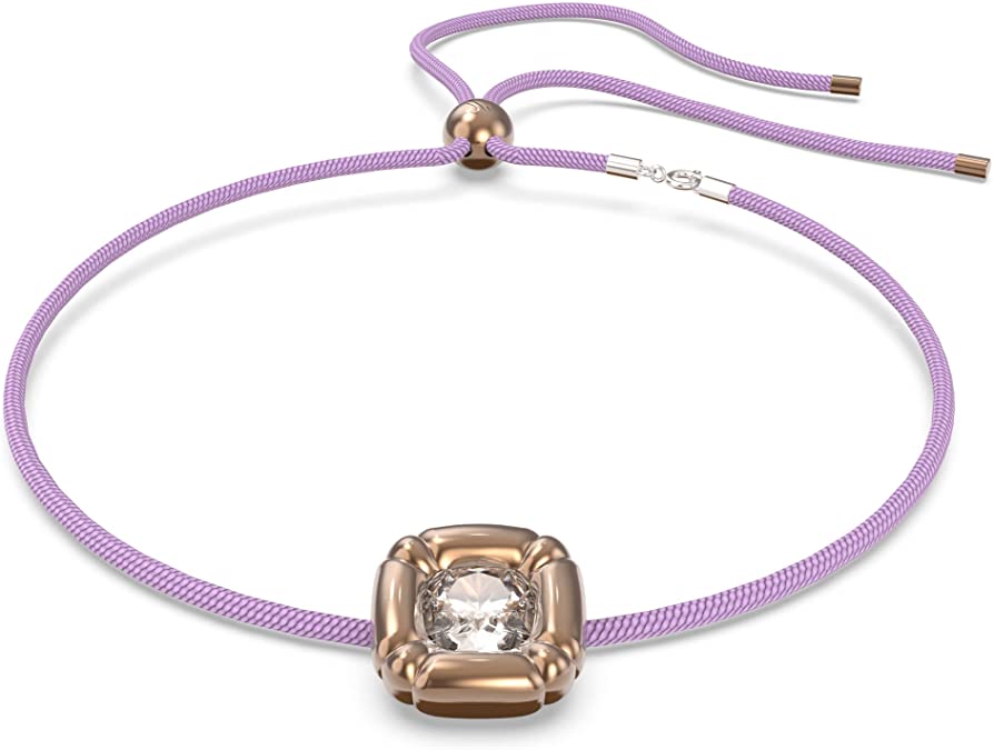 Inspired by the Pop Art movement, this necklace features a single precision-cut crystal backing, smooth moulded inlay, playfully suspended from a violet braided rope.