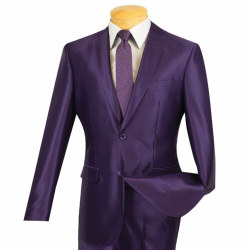VINCI Men's Purple Sharkskin 2 Button Slim Fit Suit NEW