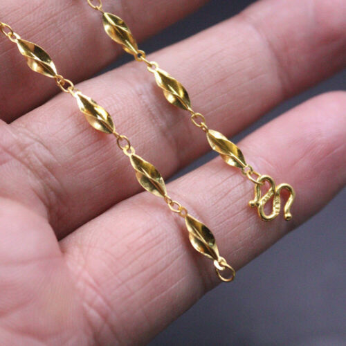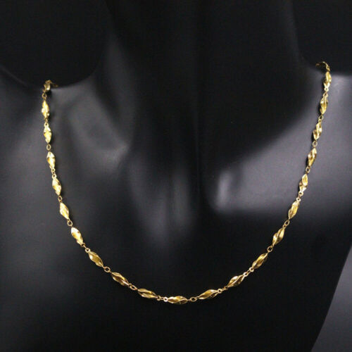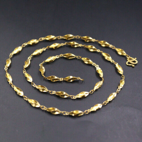 Solid 24K Yellow Gold Twisted Bead Link Chain Necklace 17inch 足金999 5.8-6.0g