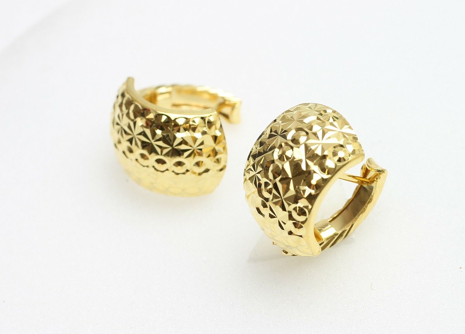 18k solid gold diamond cut hoop clip earring 4.8 gram #B8