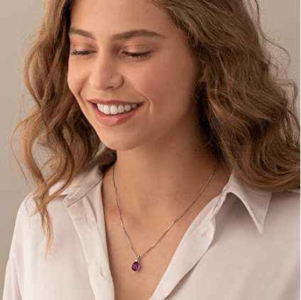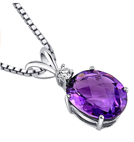 • DEEP PURPLE AMETHYST GOLD PENDANT FOR WOMEN - We've taken the timeless solitaire favorite and gave it a colorful twist with our Peora 14K Gold Pendants Collection. Featuring natural gemstone and genuine Peora Amethyst, Oval Shape, 10x8mm, 2 Carats with its signature Deep Purple hue for a luxurious glow. Stone has a flattering checkboard faceting, punctuated with a genuine white Round Brilliant Cut Diamond, 0.05 Carat, set in 14 Karat White Gold for maximum sparkle in every angle.