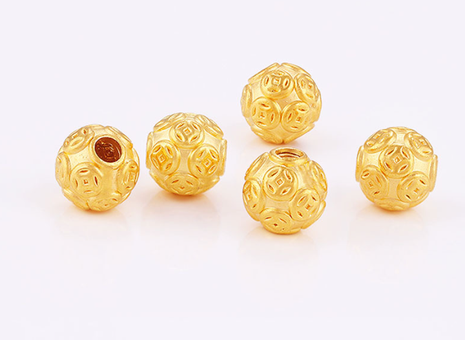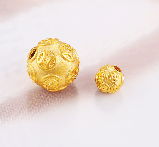 Necklace 3D hard gold money beads passepartout 24K gold copper transfer beads 999 gold beads