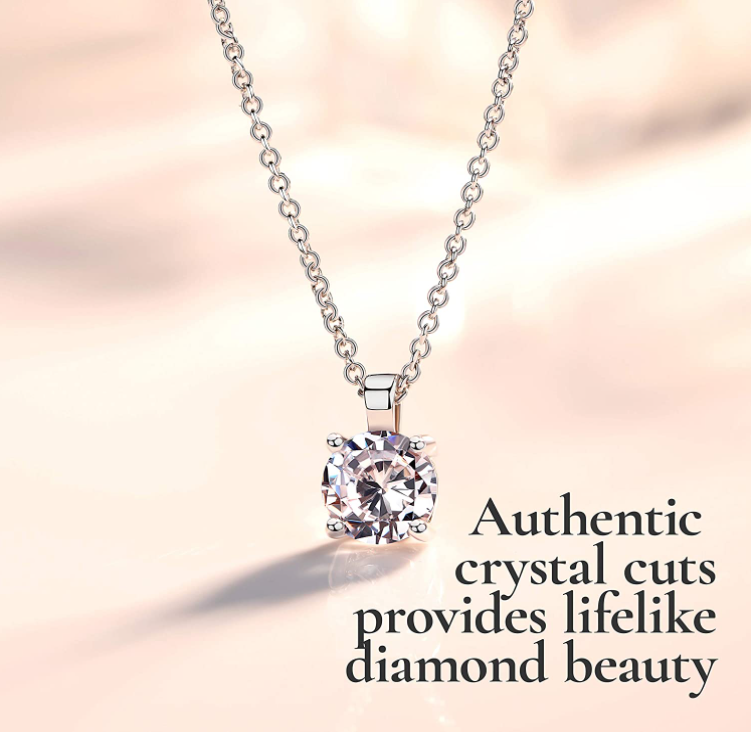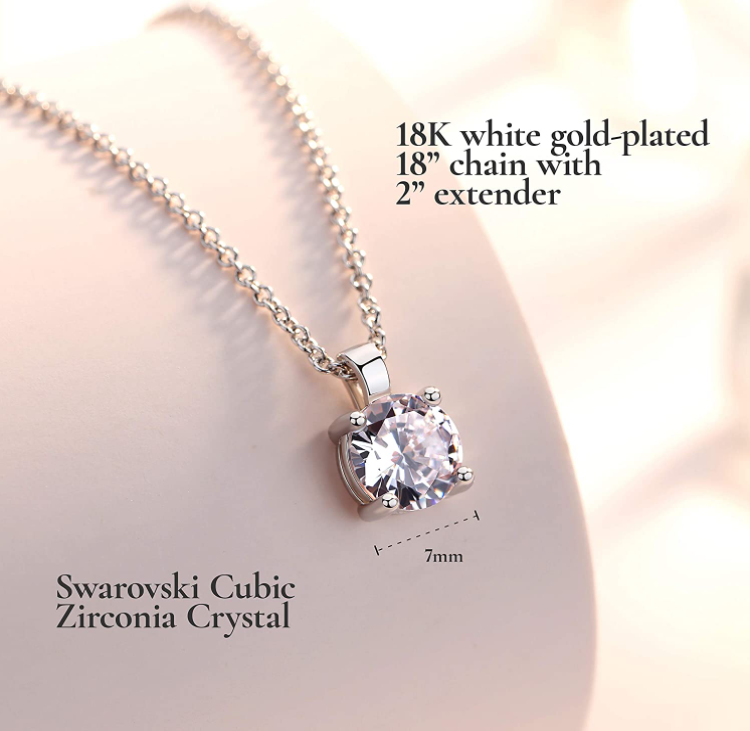 • AUTHENTIC BEAUTY- Meticulously crafted in London using the finest 7MM Swarovski Cubic Zirconia Crystal, this gifts for women necklace offers realistic diamond-quality shimmer. Accentuated with real 18K white gold-plated detail for breathtaking allure and unrivaled durability and a 18” long silver chain with a 2” extender, this glorious gifts for teenage girls prettifies any wardrobe with instant glamour so you can impress and look your best, wherever you go.