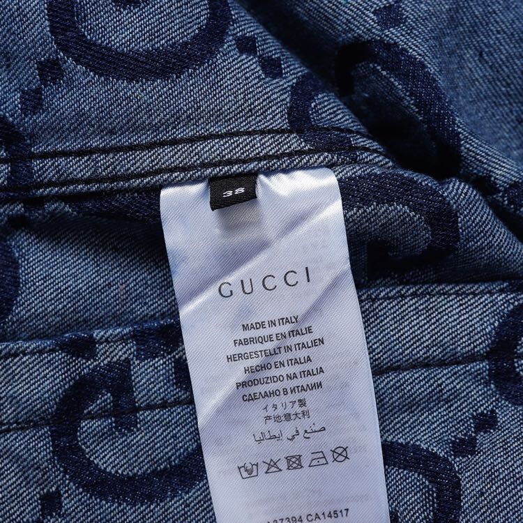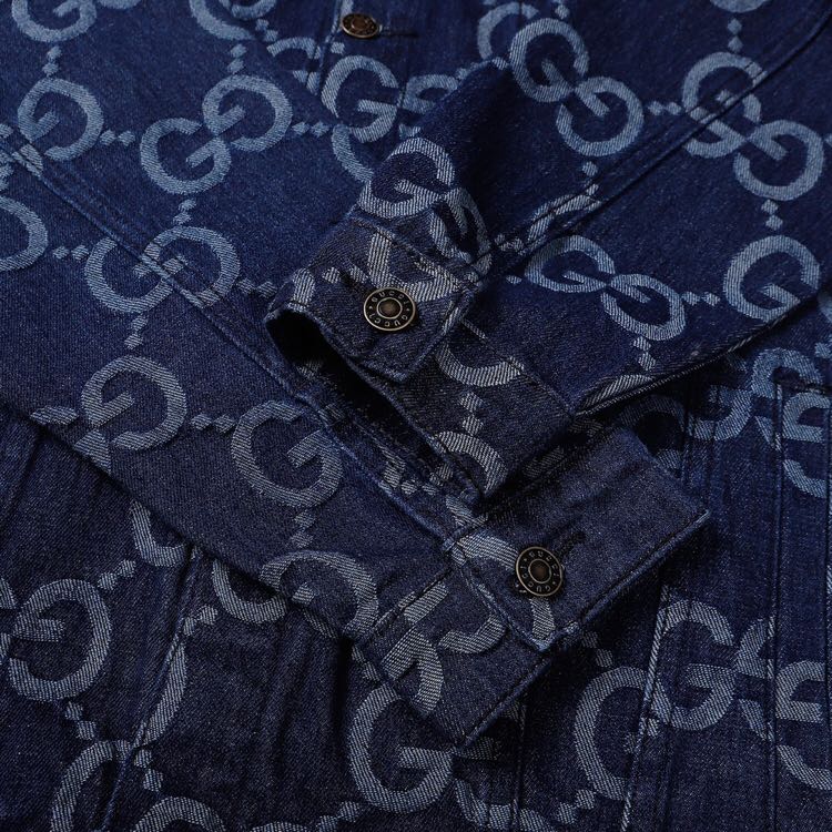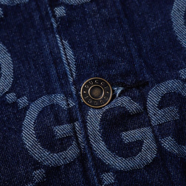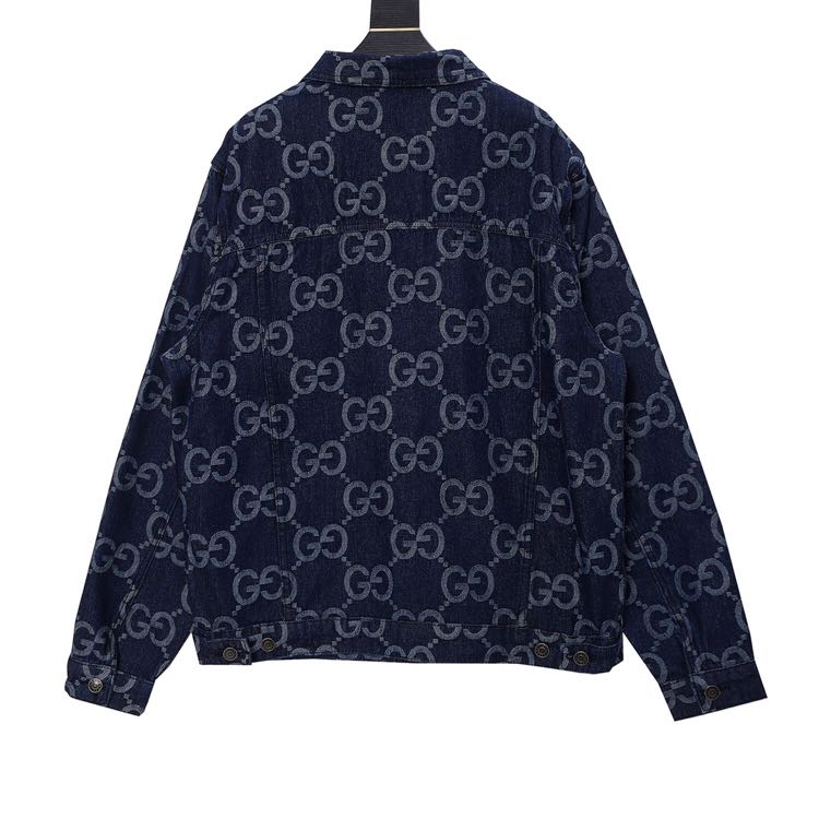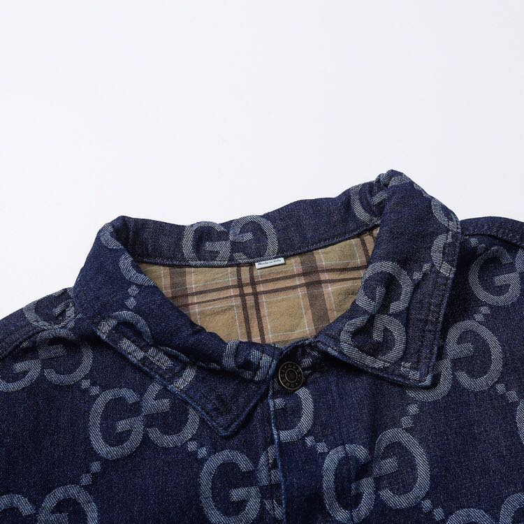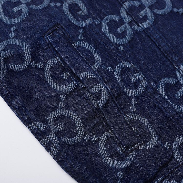 Gucci Couples pineapple series double G full print Presbyterian denim men and women jacket washed deep blue denim jacket lovers jacket