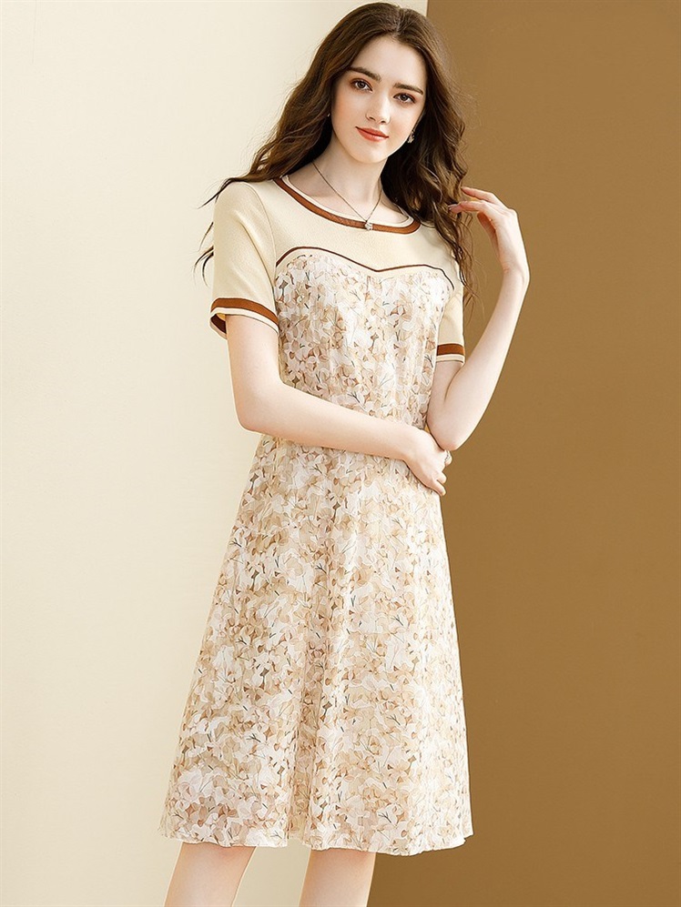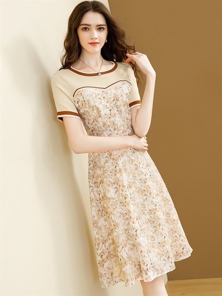 Marsfield 2022 summer women's new dress purchasing domestic genuine temperament floral stitching fake two pieces