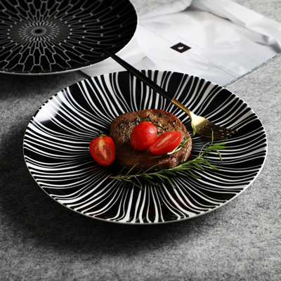 Original design line western food plate Nordic ins steak plate creative black pasta plate round breakfast plate
