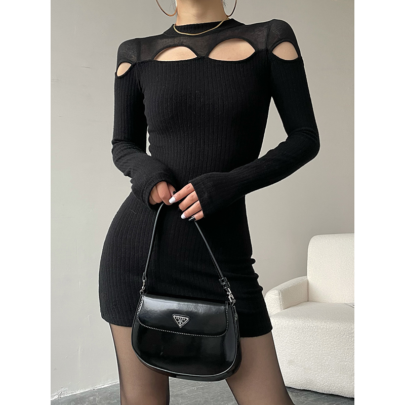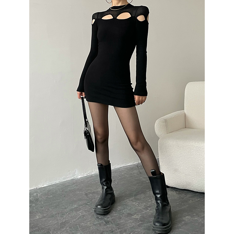 ACUP Hot Girl Dress 2022 Spring New Sexy Hollow Knit Dress