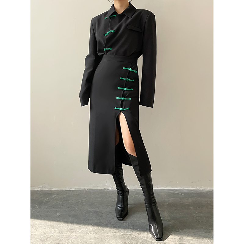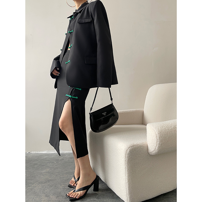 ACUP Chinese style Tang button suit jacket female 2022 spring retro country suit half skirt suit two-piece tide