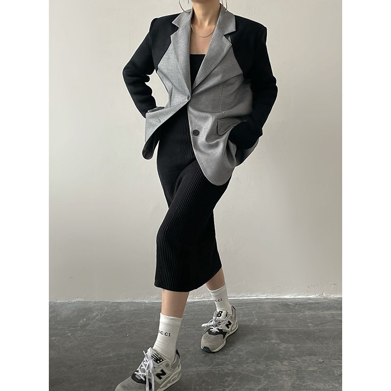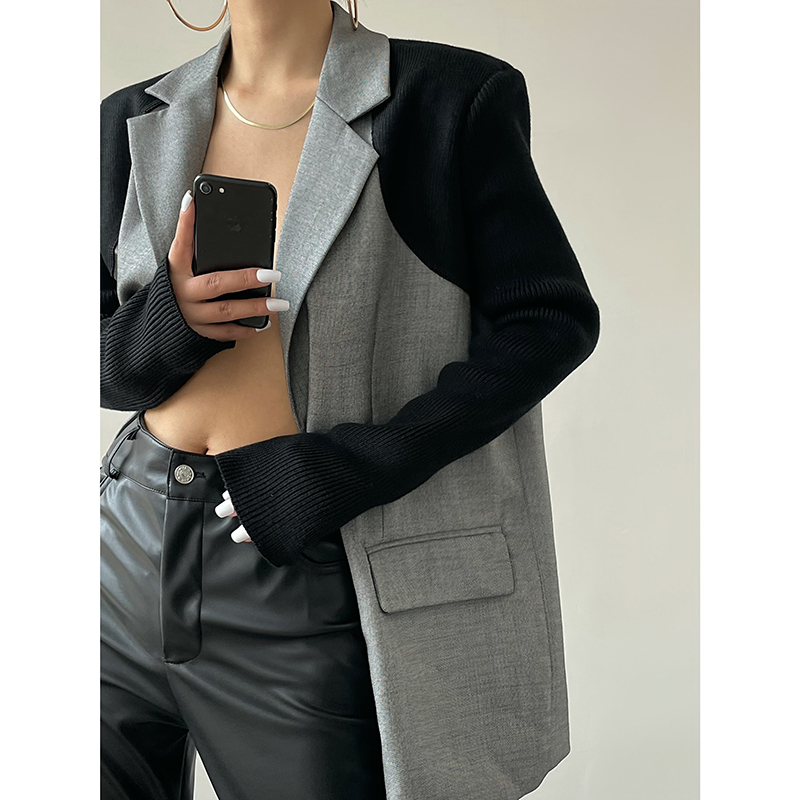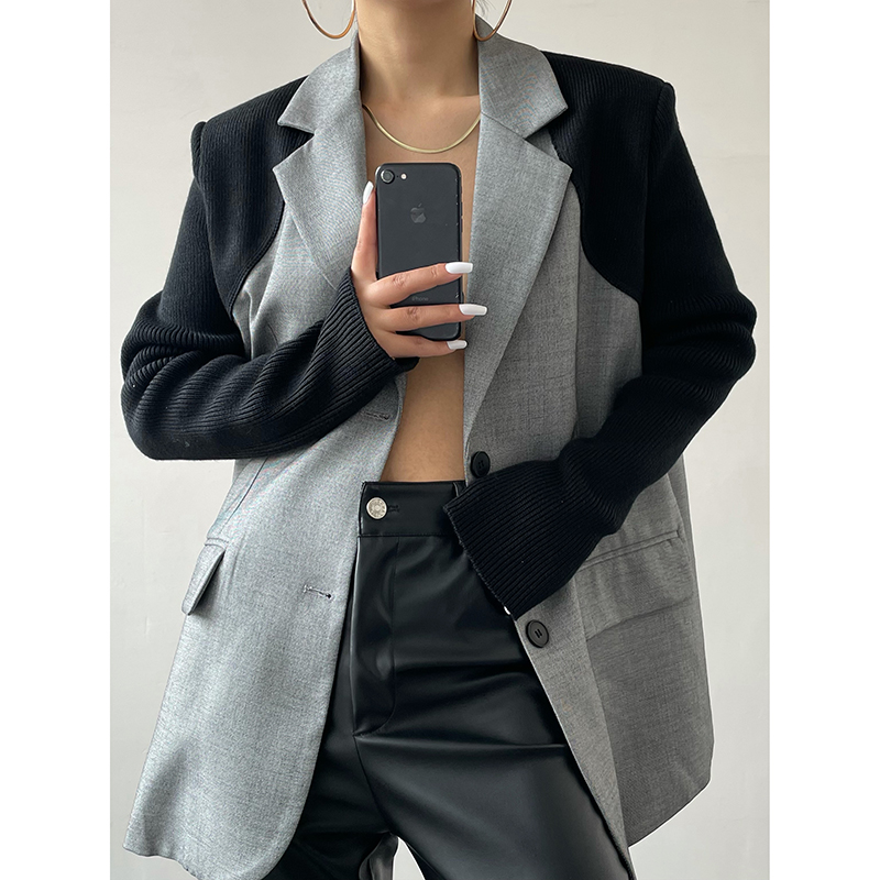 ACUP design sense niche suit jacket 2022 spring new contrast color stitching design fried street suit top women