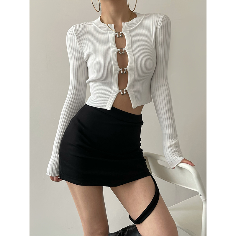 ACUP hot girl bottoming shirt 2022 spring new long-sleeved knitted hollow sexy European and American cropped navel top women's trendy women