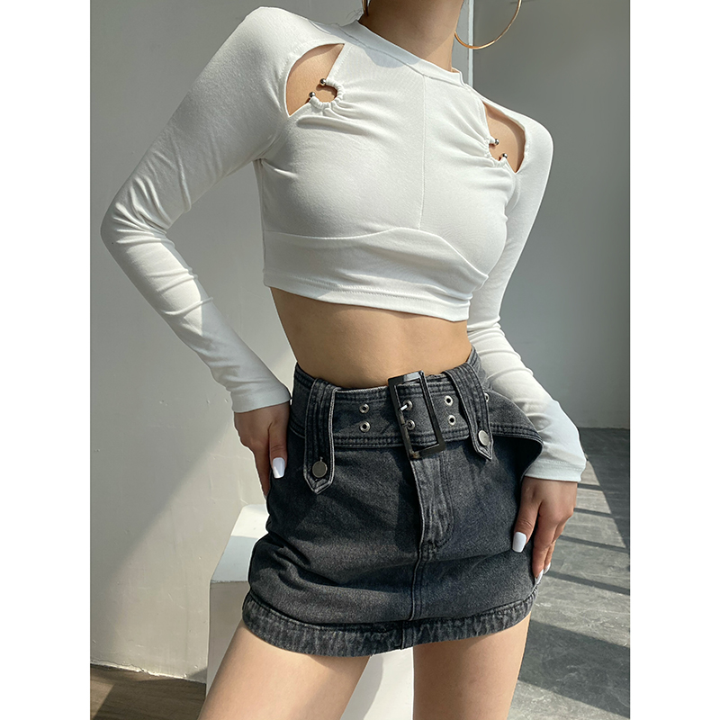 ACUP hot girl navel T-shirt 2022 spring and summer new European and American high-end design sense niche long-sleeved all-match top