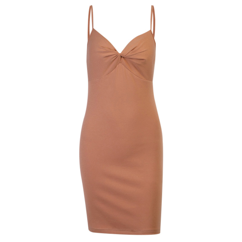 Applicable Age: 18-24 years old size: S M L Fabric: knitted fabric design: solid color style: Street collar: V collar waist: high waist garment Front: pullover Color classification: black yellow brown sleeve type: conventional combination form: single item No. : 25489P Skirt Type: one-step skirt Applicable season: Summer Year season: Summer 2022 Sleeve Length: Sleeveless skirt length: Short skirt popular elements/technology: Backless style: Sling profile: H Profile Composition: polyester fiber 95% POLYETHYLENE terephthalate (polyester)5%