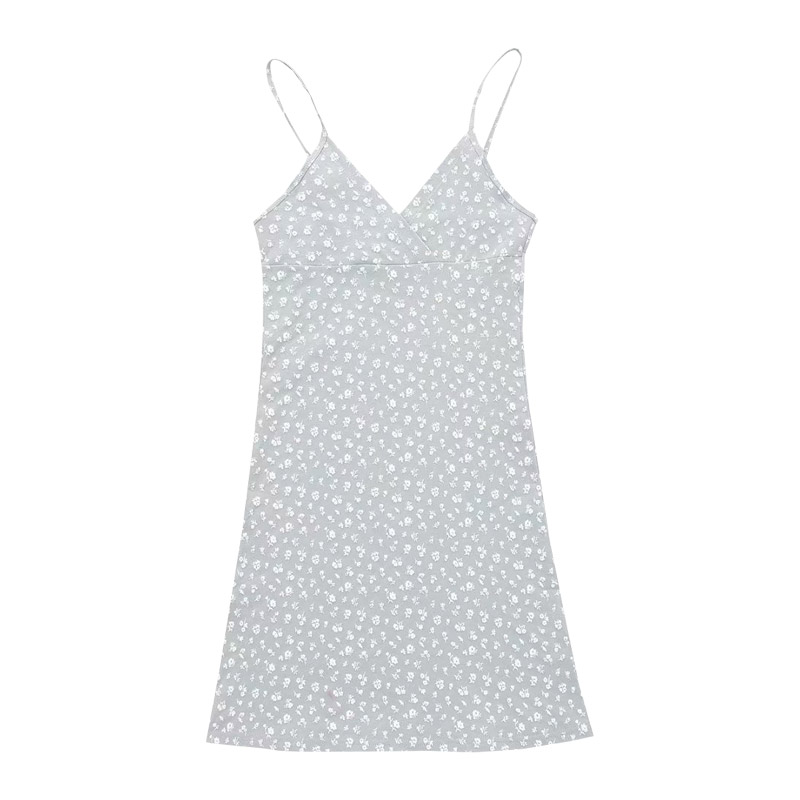 LIVIA Europe ins pure retro printed V-neck halter dress women's summer 2022 new floral halter dress