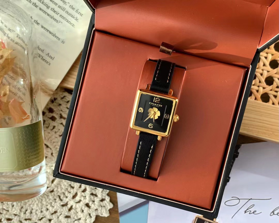 COACH/ Coach CASS tea rose dial calfskin quartz watch women's watch cube sugar cube watch