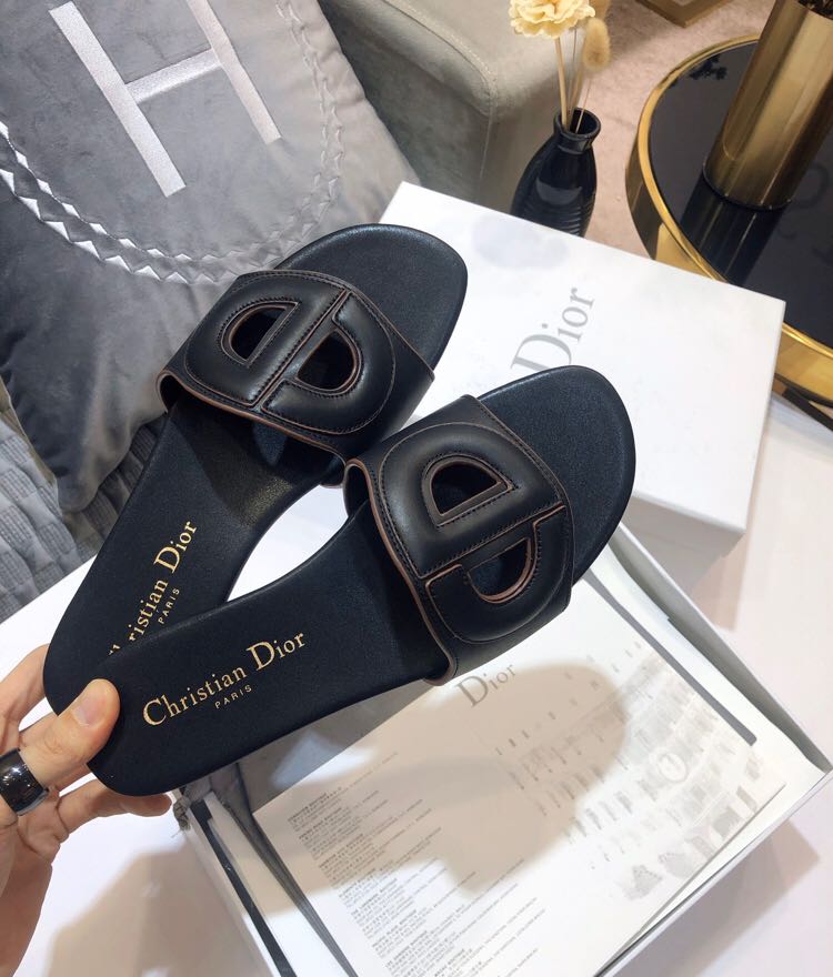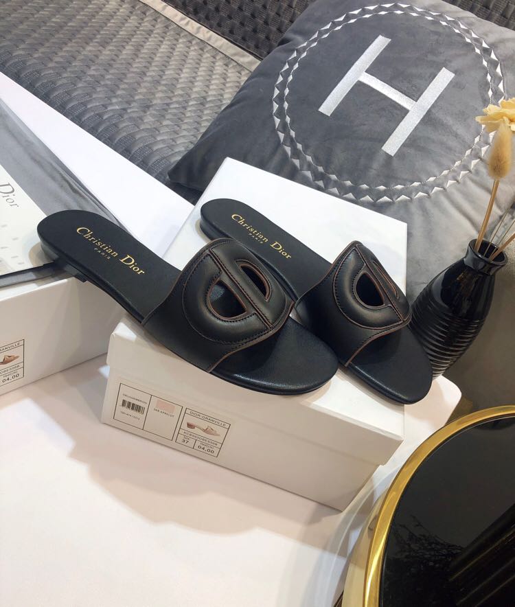 Dior 20SS Spring/summer latest CD Stereoscopic letters LOGO Flat hollow sandals thick heel flip-flops women's shoes
